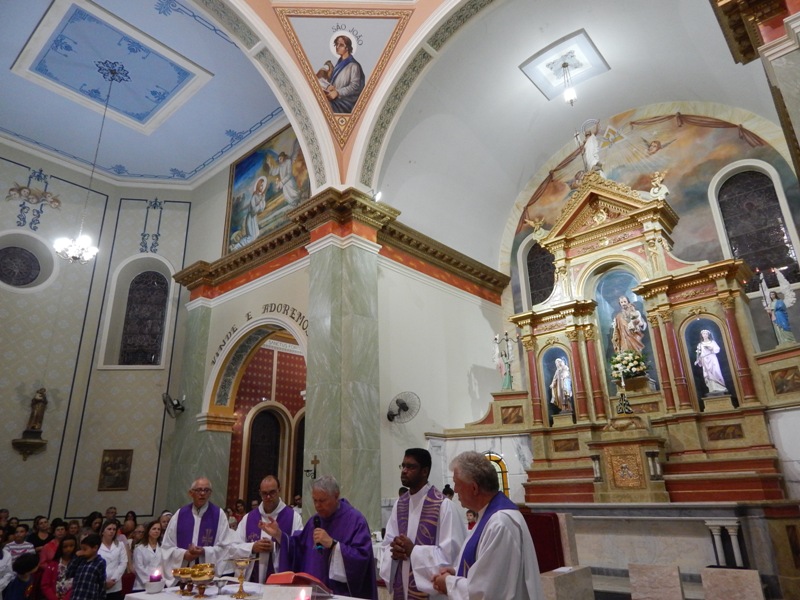 A Eucaristia teve como presidente o sacerdote da Companhia de Jesus, Pe. Paulo César Barros, filho de nossa terra, e concelebrantes os padres Sebastião Márcio Maciel, Tales Tadeu Ananias, José Raimundo do Prado e Côn. Braz Tenório Rocha.
